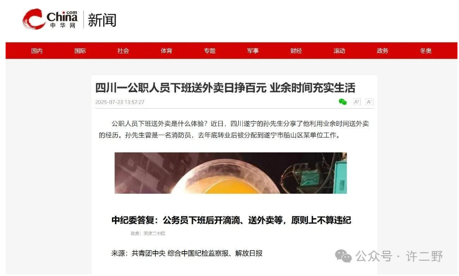 這也是為什么,四川那位送外賣的公務(wù)員沒有受到處分。