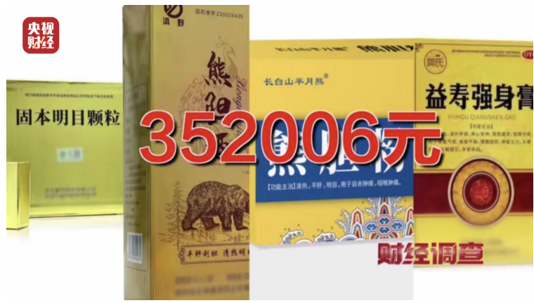 唐組長向記者展示報單群中的數據,僅6月11日和12日兩天,這家公司的固本明目顆粒、熊膽酒、熊膽粉、益壽強身膏、黃氏藥酒等產品的銷售額就達到352006元。
