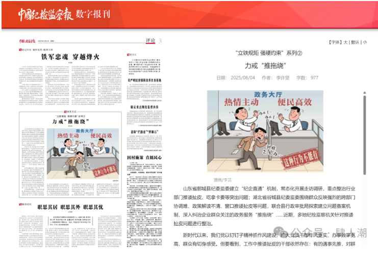 面對(duì)“推拖繞”的作風(fēng)痼疾,紀(jì)檢機(jī)關(guān)正多管齊下、重拳出擊。制度層面,《中國(guó)共產(chǎn)黨紀(jì)律處分條例》第一百二十六條規(guī)定:對(duì)符合政策的群眾訴求推諉扯皮、消極應(yīng)付,損害黨群干群關(guān)系的,要視情節(jié)給予相應(yīng)紀(jì)律處分,嚴(yán)重者可撤銷黨內(nèi)職務(wù)。執(zhí)行層面,各地紀(jì)檢監(jiān)察機(jī)關(guān)持續(xù)發(fā)力。多地推動(dòng)政務(wù)窗口問(wèn)題登記、公示反饋、責(zé)任倒查;通過(guò)明察暗訪、交叉檢查、跟蹤督辦等方式,深挖作風(fēng)積弊。今年上半年,全國(guó)因作風(fēng)不實(shí)被處理的黨員干部超過(guò)5000人,其中被給予黨紀(jì)政務(wù)處分者超3200人。