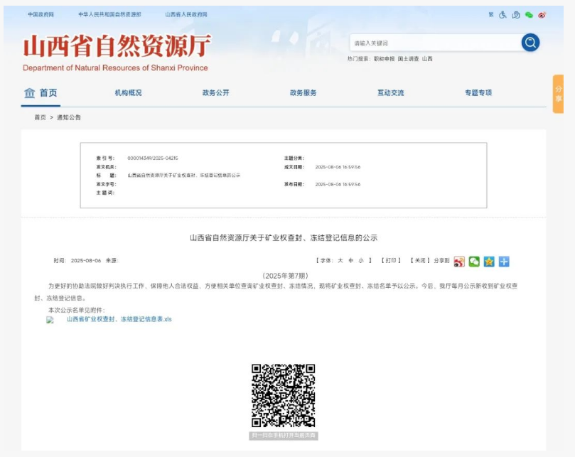 8月6日,山西省自然資源廳發(fā)布的一則公告在全省礦業(yè)界投下一顆震撼彈——《關(guān)于礦業(yè)權(quán)查封、凍結(jié)登記信息的公示》正式披露26家礦業(yè)公司的礦業(yè)權(quán)被法院依法查封或凍結(jié)。