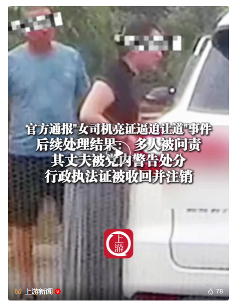 2025年8月3日,我市發(fā)布“女司機亮證逼迫讓道”輿情情況通報后,調查組會同相關部門和單位本著實事求是、依法依規(guī)原則,對有關違規(guī)違法和失職失責人員,深入開展調查和處理問責。同時,要求相關單位和個人深刻汲取教訓,認真全面整改。現(xiàn)將處理情況通報如下: