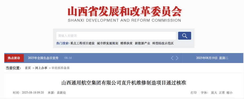 近日,山西省發(fā)展和改革委員會傳來振奮人心的消息,山西通用航空集團有限公司直升機維修制造項目以及國道209線河津市過境改線工程兩大重點項目迎來關(guān)鍵進展,分別獲得核準批復與可行性研究報告批復,這將為山西的產(chǎn)業(yè)升級和交通改善注入強勁動力。