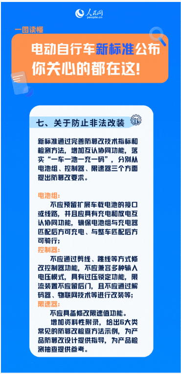為防范“私自解速”現(xiàn)象的發(fā)生,9月起實施的電動自行車“新國標(biāo)”明確,一旦超過25公里每小時,電動機自動停止動力輸出。此外,“新國標(biāo)”還完善了電動自行車的電池組、控制器、限速器的防篡改要求,并增加北斗定位、通信與動態(tài)安全監(jiān)測功能。