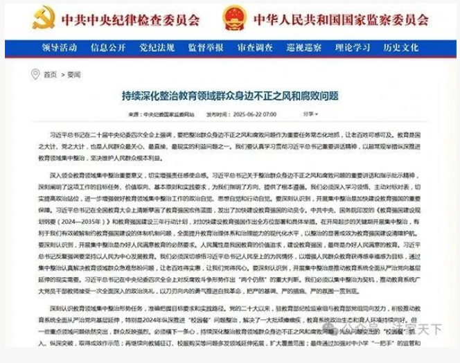 最近,中紀委再次放出大招,劍指教育系統(tǒng),將持續(xù)嚴查教育領域腐敗,點名整治六大亂象!從招生到基建,從教輔到食堂,這些藏在校園角落的“暗瘡”將重點打擊!教育本是社會公平的基石,可一旦被腐敗侵蝕,傷害的不僅是家長的錢包,更是孩子的未來。六大類教育腐敗行為被一一鎖定,絕不姑息!