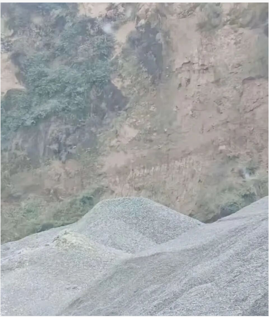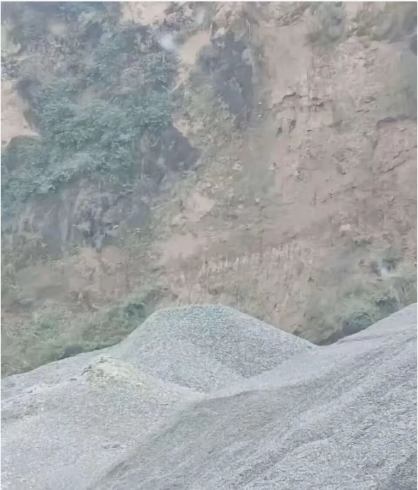 生長; 雨天時, 石料堆滲出的污水隨意流