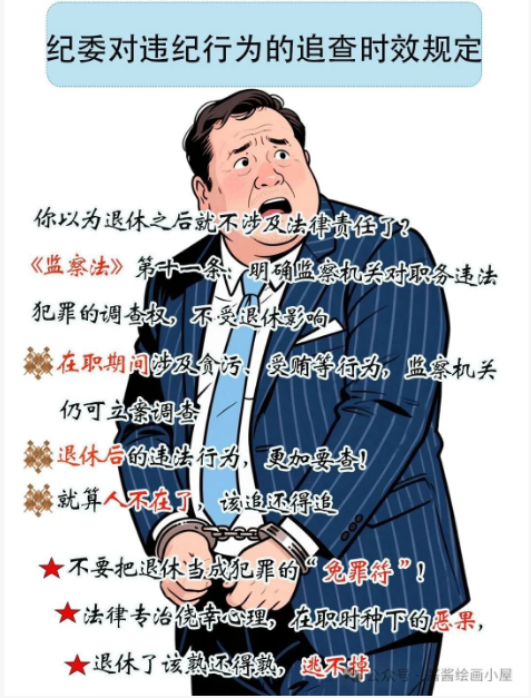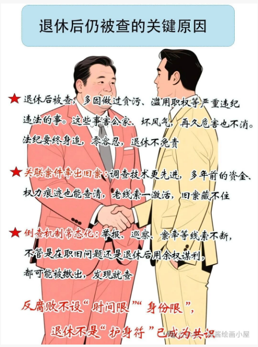 無論是在職還是退休人員,只要行為觸犯黨紀國法,均可能被立案調(diào)查并追究相應責任,不要心存僥幸。