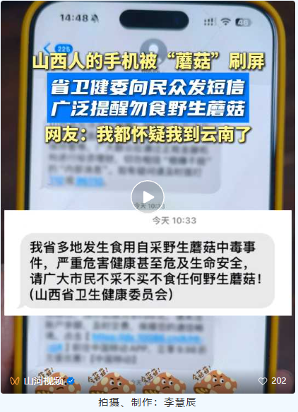 9月12日,太原不少市民收到一則手機(jī)短信,“我省多地發(fā)生食用自采野生蘑菇中毒事件,嚴(yán)重危害健康甚至危及生命安全,請(qǐng)廣大市民不采不買(mǎi)不食任何不明毒性的野生蘑菇(山西省衛(wèi)生健康委員會(huì))”。近期我省雨水較多,適合野蘑菇生長(zhǎng)。8月27日以來(lái),我省食源性疾病監(jiān)測(cè)系統(tǒng)接到太原市、晉中市、忻州市因食用自采野生蘑菇導(dǎo)致的肉褐鱗環(huán)柄菇中毒的病例報(bào)告,個(gè)別病例病情較重。