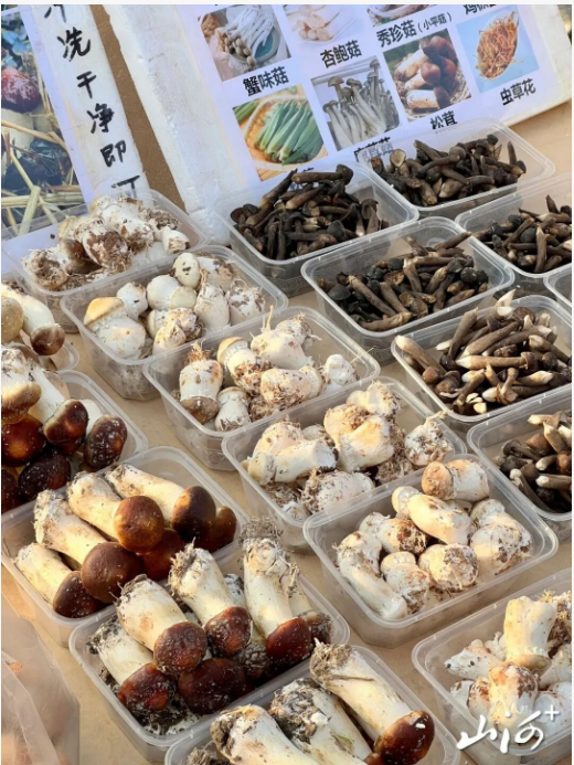 市場(chǎng)上售賣(mài)的可食用蘑菇。
