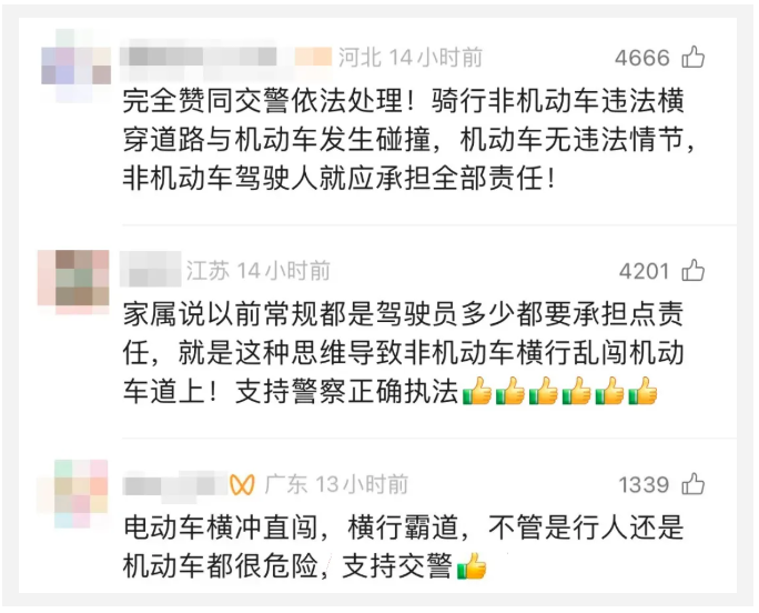 不料女子家屬到來后,不服判決還質(zhì)疑,“以前駕駛員多少都要帶點責任的”。交警回應稱,“人人都這樣想,駕駛員還怎么開車?自行車橫過機動車道,必須下車推行,有違法行為的一方,就要承擔事故的全部責任。”