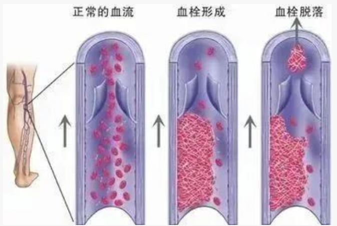 下肢的深靜脈血栓一旦脫落,可能隨血流移動堵住肺動脈,形成肺栓塞,造成呼吸困難、劇烈胸痛、咯血等癥狀,嚴重者可致命。