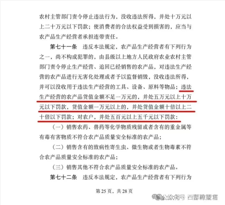第七十一條對銷售農(nóng)獸藥、重金屬等超標(biāo)農(nóng)產(chǎn)品的若干行為提供了明確的處罰依據(jù)。