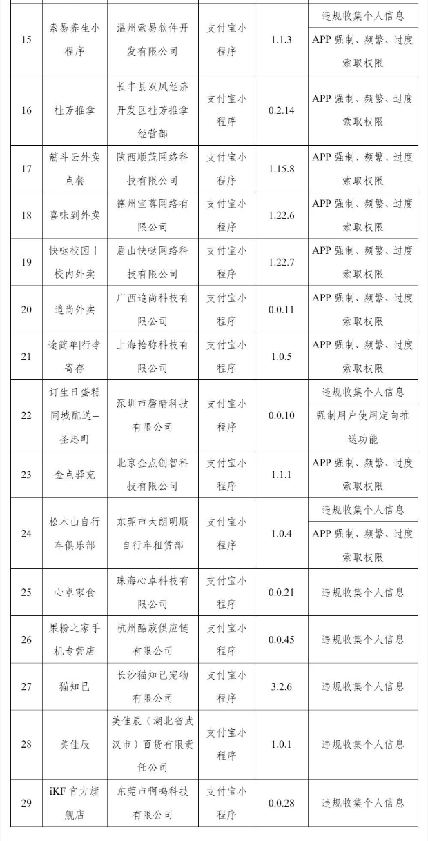 近期,工信部對APP違法違規(guī)收集使用個人信息等問題開展治理,共發(fā)現(xiàn)29款APP存在侵害用戶權(quán)益行為,現(xiàn)予以通報。