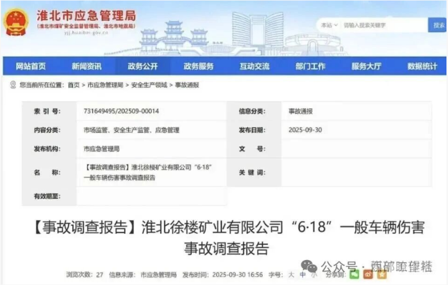 2025年6月18日,淮北徐樓礦業(yè)有限公司-205水平7-7采場鏟運(yùn)機(jī)出礦時(shí)發(fā)生一起車輛傷害事故,造成1人遇難,直接經(jīng)濟(jì)損失200萬元。