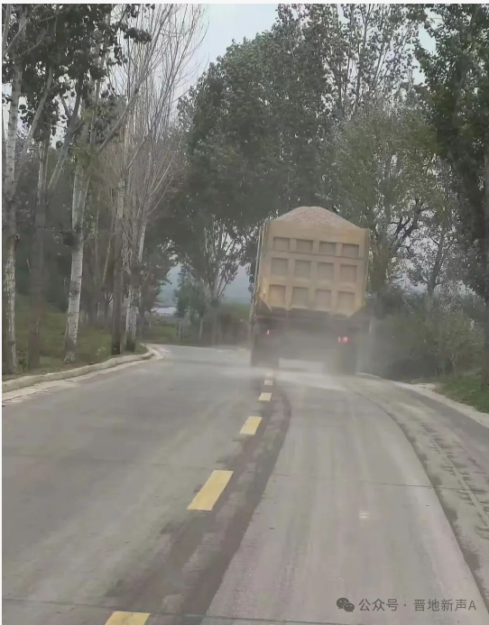 運(yùn)稷線路段上,大車肆意橫行,行駛時(shí)均未采取苫蓋措施。車輛飛馳而過時(shí),沙石原料隨風(fēng)飄散,不僅污染環(huán)境,更對(duì)道路交通安全構(gòu)成直接威脅。