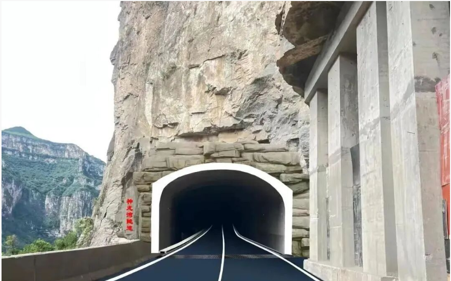 神龍灣掛壁公路,這條鑲嵌在太行絕壁上的“空中走廊”,曾是當?shù)卮迕裼檬骤徃绞介_鑿的生命線。然而,隨著時代發(fā)展,原有道路已難以滿足發(fā)展需求,最窄處僅3.3米,最低凈高不過3.8米,不僅錯車困難,而且35個透光洞口沿線上部巖體風(fēng)化嚴重,落石風(fēng)險頻發(fā),存在一定的安全隱患。當?shù)匕傩盏某鲂邪踩⑧l(xiāng)村振興的推進、旅游產(chǎn)業(yè)的發(fā)展,都呼喚著一條真正安全暢通的現(xiàn)代化公路。