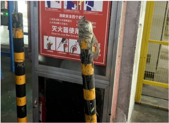 分揀場所部分消防設備(消火栓、滅火器)未定期檢查維護,部分消防雙外側防護樁移位,影響消防設備直接使用。不符合《郵政快件處理場所、營業(yè)場所安全管理規(guī)范化二十條細則》第十六有關規(guī)定。