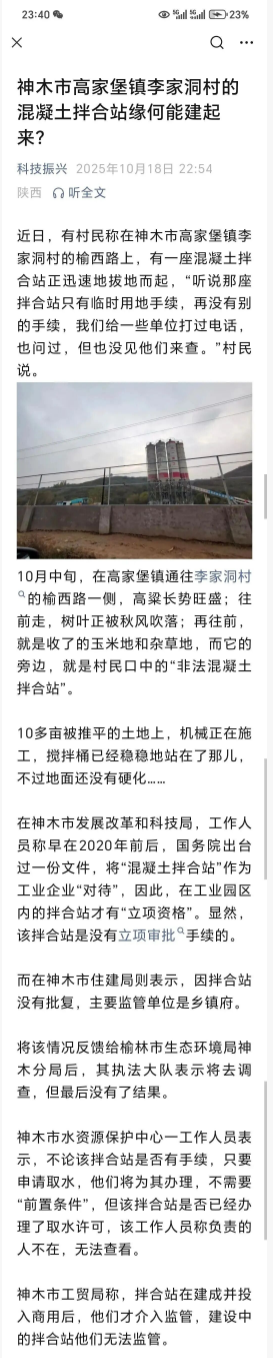 神木市高家堡鎮(zhèn)李家洞村的混凝土拌合站緣何能建起來?