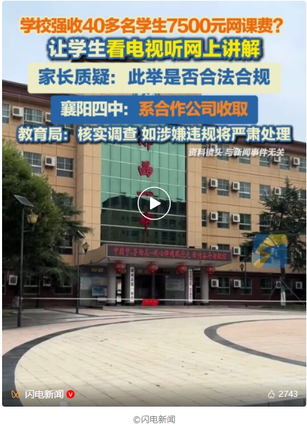 “襄陽(yáng)四中學(xué)生上課時(shí),通過(guò)網(wǎng)絡(luò)與我家孩子所在班級(jí)同步進(jìn)行?!苯?,湖北十堰市鄖西縣第一中學(xué)一名高二學(xué)生家長(zhǎng)稱,對(duì)方強(qiáng)制收取每個(gè)學(xué)生7500元網(wǎng)絡(luò)授課費(fèi),加重家長(zhǎng)負(fù)擔(dān),質(zhì)疑此舉是否合法合規(guī)。對(duì)此,襄陽(yáng)市教育局和鄖西縣教育局相關(guān)人士均表示,將進(jìn)一步核實(shí)調(diào)查,如果涉嫌違規(guī)將嚴(yán)肅處理。