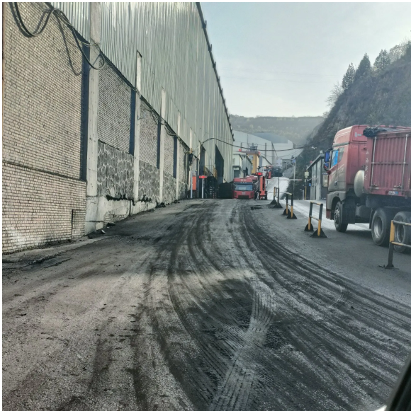 該洗煤場長期以來缺乏基本的防塵治理設(shè)施,生產(chǎn)過程中產(chǎn)生的大量煤塵無組織排放,不僅污染場內(nèi)環(huán)境,更對周邊生態(tài)和居民生活造成惡劣影響。尤為嚴重的是,場外離磧線沿線道路上煤面遍地,車輛通行時