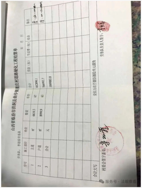 工程相關(guān)款項(xiàng)總計(jì):109883.8元,這些年村委會(huì)僅零散支付了部分金額,至今仍拖欠我和工人43萬(wàn)元工資——這43萬(wàn)元是跟著我干活的老鄉(xiāng)們的血汗錢(qián),是他們養(yǎng)家的本錢(qián),我一分利息都不敢提,只盼著能拿回本金,給跟著我辛苦一場(chǎng)的老鄉(xiāng)們一個(gè)交代。