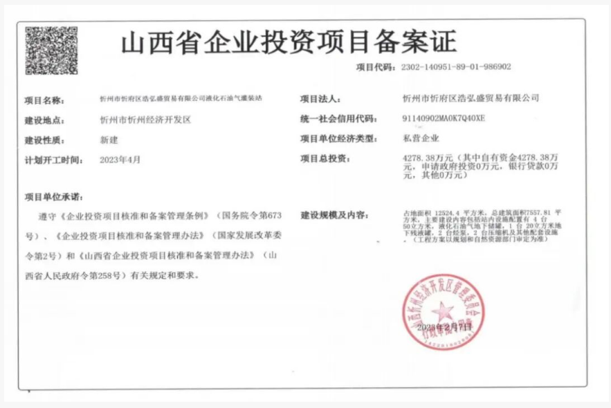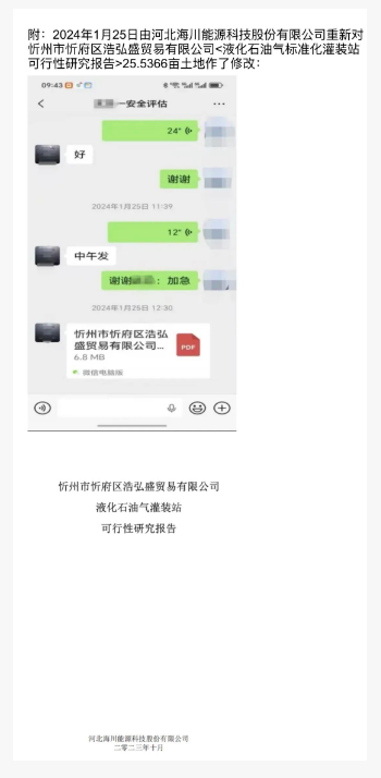 2023年2月13日,山西省人民政府辦公廳下發(fā)《關于在全省開展瓶裝液化石油氣行業(yè)標準化建設的通知》(晉政辦發(fā)電〔2023〕4號),明確液化氣標準站建設用地面積需達13000-16000平方米(約19.5-24畝),此前約定的18.7866畝土地已不符合標準。