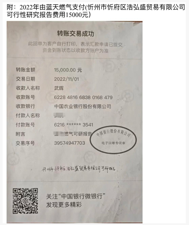 2022年10月,雙方初步達成協(xié)議:藍苑公司以680萬元價格購買該地塊;為推進項目,老賈于10月19日注冊“忻州市藍天燃氣有限公司”(下稱“藍天公司”),專門用于液化氣站運營。