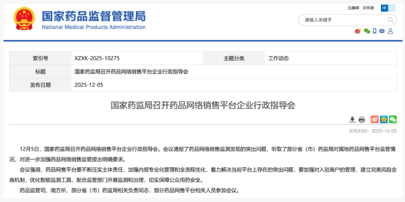 近日,國家藥監(jiān)局召開藥品網(wǎng)絡銷售平臺企業(yè)行政指導會,會議通報了藥品網(wǎng)絡銷售監(jiān)測發(fā)現(xiàn)的突出問題,強調藥品網(wǎng)售平臺要不斷壓實主體責任,加強內部專業(yè)化管理和全流程優(yōu)化,著力解決當前平臺上存在的突出問題,要加強對入駐商戶的管理,建立完善風險會商機制,優(yōu)化智能監(jiān)測工具,配合監(jiān)管部門開展監(jiān)測和治理,切實保障公眾用藥安全。