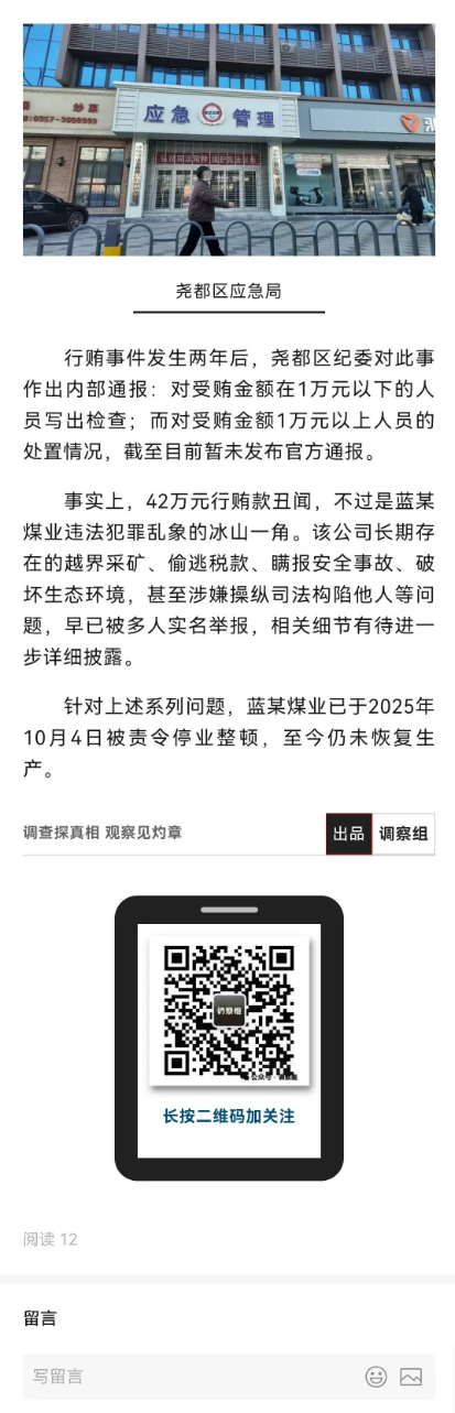 的調(diào)查與處理十分必要。此外,后續(xù)仍有必要查明,如此這般公然袒護(hù)瞞報者,是否涉及不當(dāng)?shù)臋?quán)錢交易?除了該起事件,在過往落實安全生產(chǎn)監(jiān)督責(zé)任的過程中,又是否同樣存在著責(zé)任失守的情形?