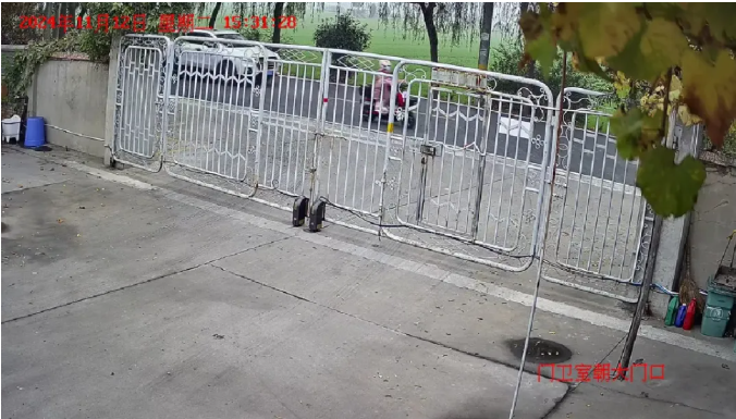 事故現(xiàn)場附近一家紙板廠的監(jiān)控視頻顯示,15時31分28秒,騎車的白琳與一輛白色汽車沿道路西側(cè)一前一后經(jīng)過廠區(qū)門口;31分32秒,有樹枝明顯晃動,同時伴有窸窣的樹葉響聲;31分34秒,道路東側(cè)車道有一輛白色廂式車輛從對向駛過。