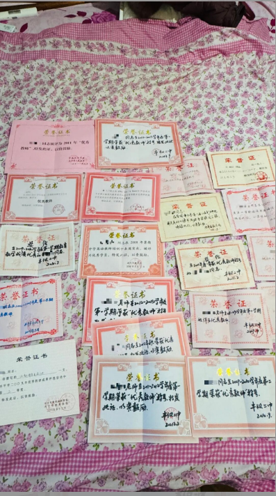 白琳的榮譽(yù)證書。圖/九派新聞 胡冰月